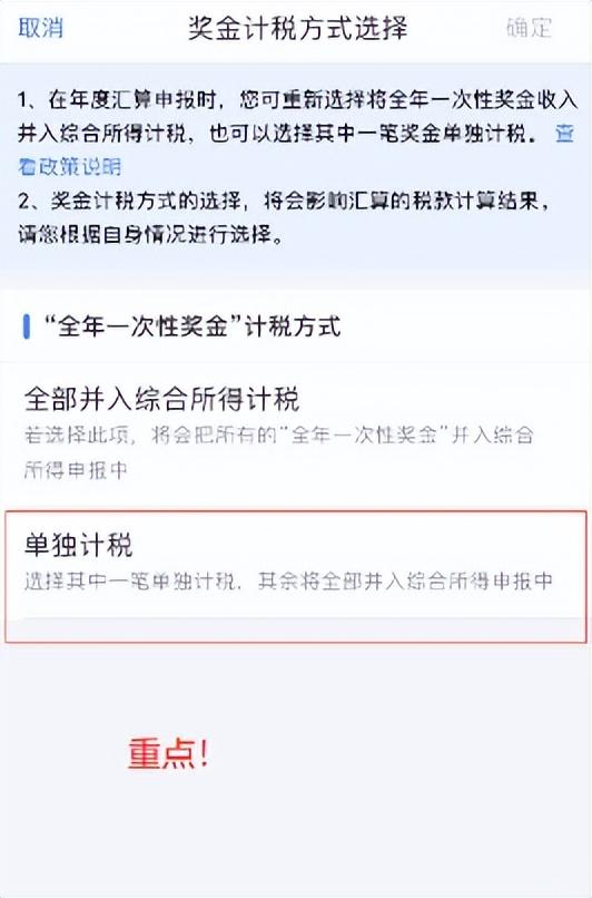 第六步:选择单独计税。(这里是最关键的一步,补税还是退税主要看这里,一般情况下建议选择单独计税,不放心的小伙伴可以两种都试一试,只要不最终提交,可以提前看到纳税情况)