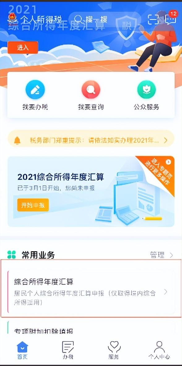 第一步:打开个人所得税APP,点击综合年度汇算进入。