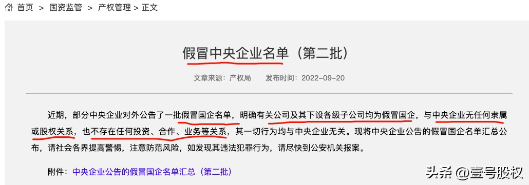 但是即便在股权关系上有关系,也未必就是国企,但是普通人是很难分别的,即便是笔者也很难分辨,9月20日,国资委网站就公布了一份假冒国企的名单,该名单一共有175家企业,都是假国企,这批假国企和中央企业无任何隶属关系或股权关系,也不存在任何投资、合作、业务等关系。