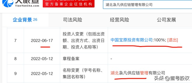 该份假国企名单中的第二家企业“湖北袅凡供应链管理有限公司”,其历史股东也是“中国宝原投资有限公司”,今年6月份才退出股东行列。从股权关系上来说,这家假国企也是属于中国核工业集团旗下孙公司。