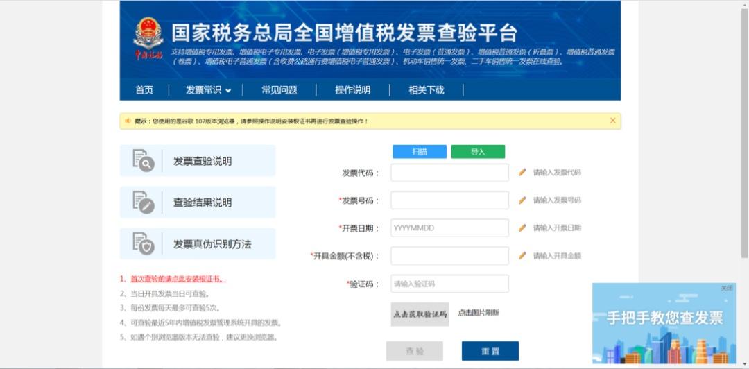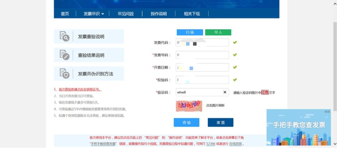 现在,您就可以正常查验发票了。注意:验证码需要您正确并完整地填写之后才会出现。