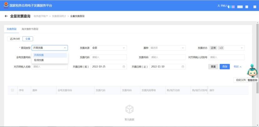 Tips:如果是当天开具的发票在全量查询里找不到,纳税人可以尝试在近24小时发票查询中查询。