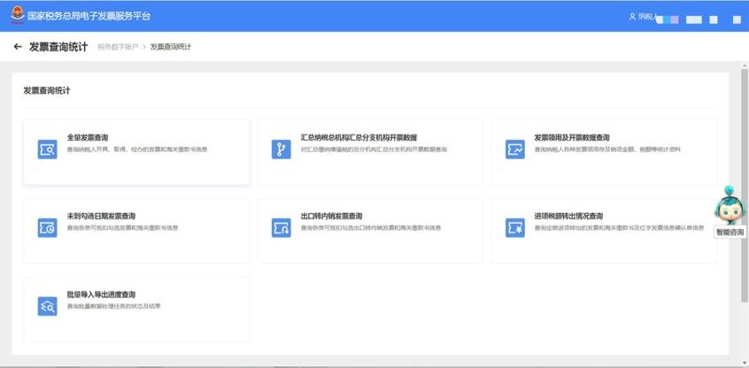 路径二:【我要办税】—【税务数字账户】—【发票查询统计】—【全量发票查询】。