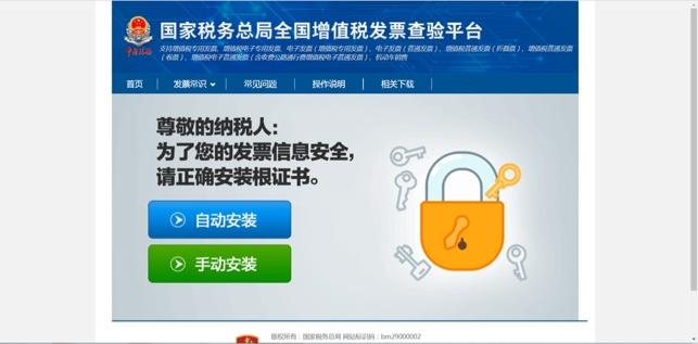 说明您是首次使用“全国增值税发票查验平台”的纳税人,此时您应该先点击网页左侧跳转到安装页面。