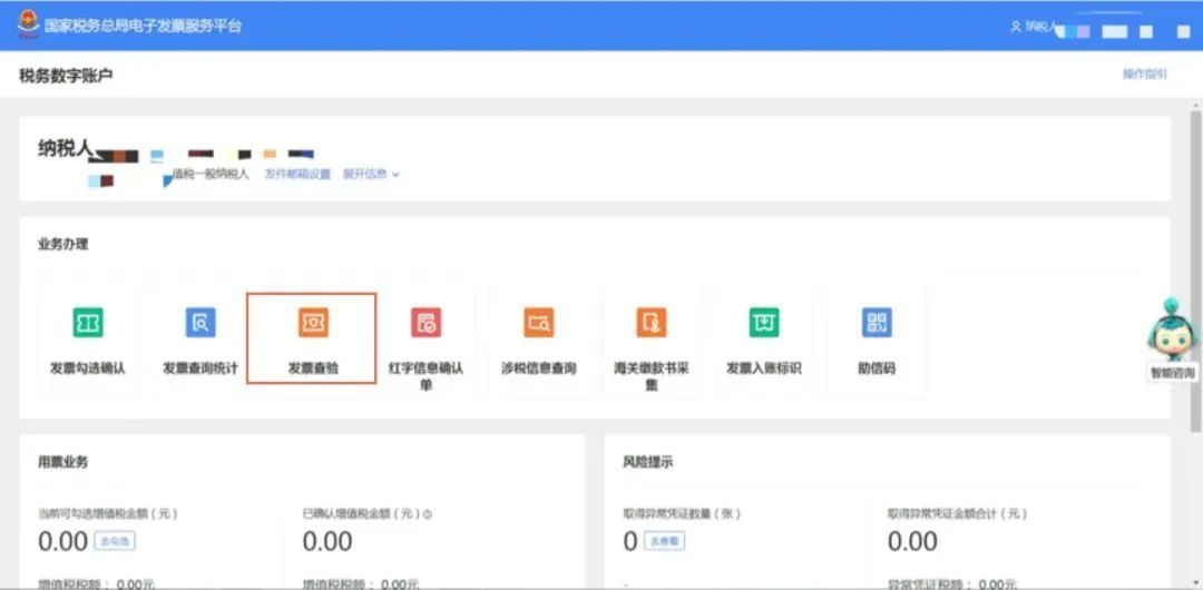 路径一:【我要办税】—【税务数字账户】—【发票查验】。