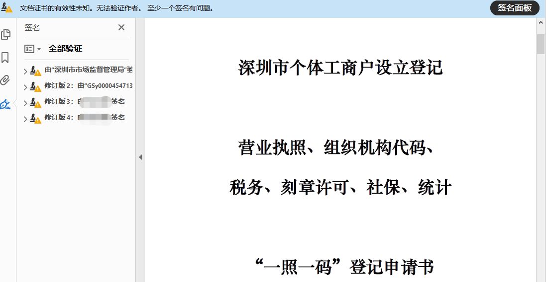 3.其他操作步骤基本都要要求提示来,内容填写基本与上述手机移动端填写的一样。着重与大家分享下个人银行卡U盾和电子数字证书使用的方法。上述门店信息和经营者信息、经办人信息填写后,我们最终下载一份《个体工商户设立‘一照一码’申请书》的PDF文件。我们需要用经营者及经办人的数字证书或银行U盾在上面签字,提交就可以了。有个地方需要提起注意,此前,笔者使用的文档工具是WPS,还是会员。在此操作中,是无法完成数字签字的。我们需要下载一个“DC”(全称‘Adobe Acrobat Reader ’),是一个经典的PDF阅读器,在360安全卫士中的软件管家中可以轻松下载安装。
