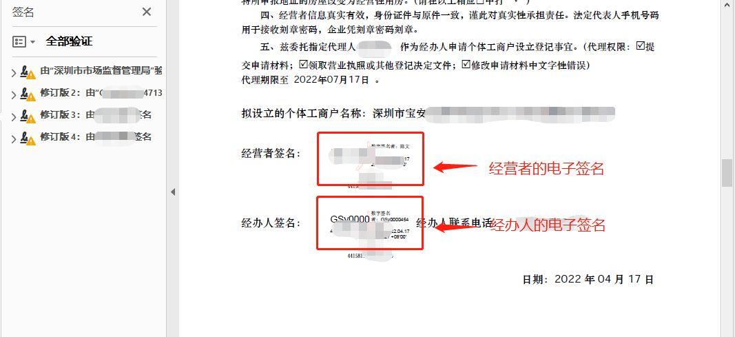 完成数字签名后,我们在PDF上点“提交”,整个申请流程完成了。之后,我们可以在深圳市场监督管理局官网,也就是前面我们刚开始业务操作的主页面可以查询业务申请的进程,一般,个体营业执照申请,1-3天就下证了,如果被驳回,也不要慌,我们根据其驳回的具体要求再去提交资料就可以了。