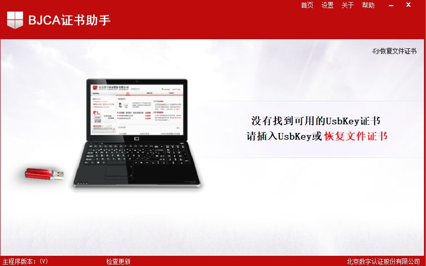 北京CA数字整数的软件驱动“BJCA”证书助手操作界面
