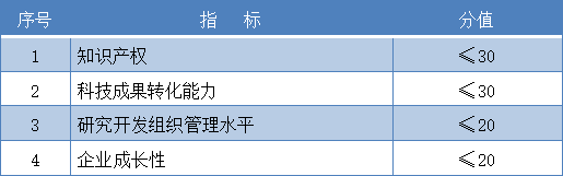 高新认定实行评分制度,综合得分达到70分以上(不含70分)为符合认定要求。具体指标及分值如下: