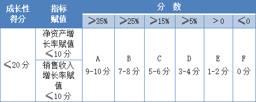 根据企业净资产增长率、销售收入增长率等指标进行综合评价,计算方法如下: