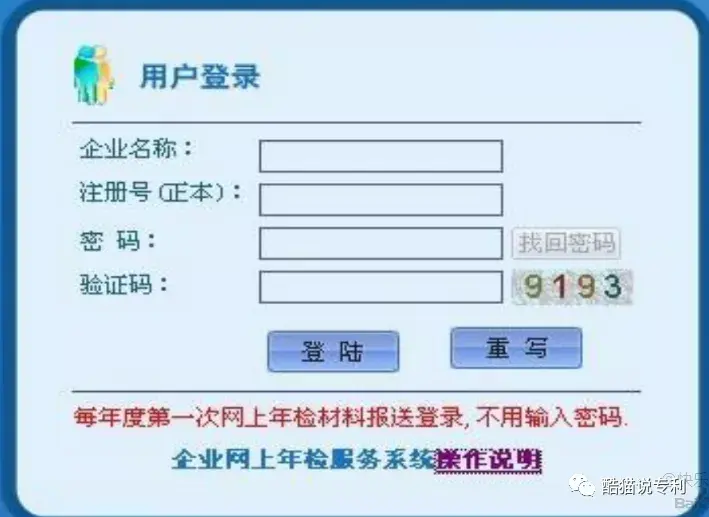 进入到登录界面后,需要填写企业名称、注册号(与营业执照正本登记的内容和格式相同),密码(非网员第一次登录时不用输入密码,登陆成功后请按提示自设一个6位数密码,本年度除第一次以外的登录都需使用该密码,以保护您的资料不被非法查阅),输入验证码进入年检材料报送系统。点击“录入年检数据”按钮,进入年检资料录入界面。