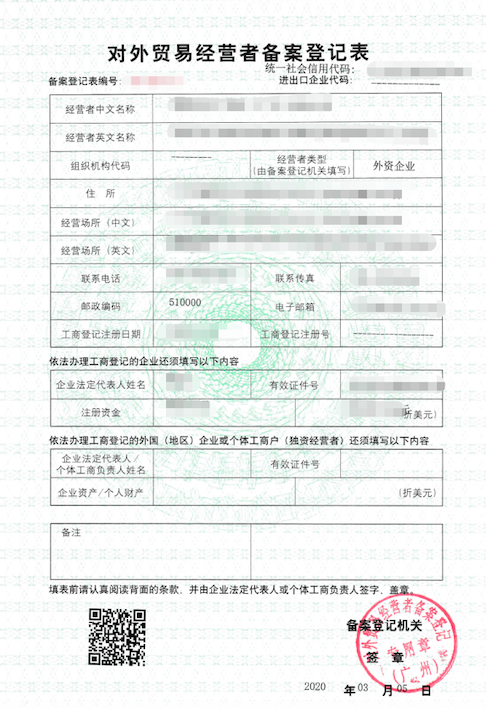 步骤一:向商务局申请《对外贸易经营者备案登记表》