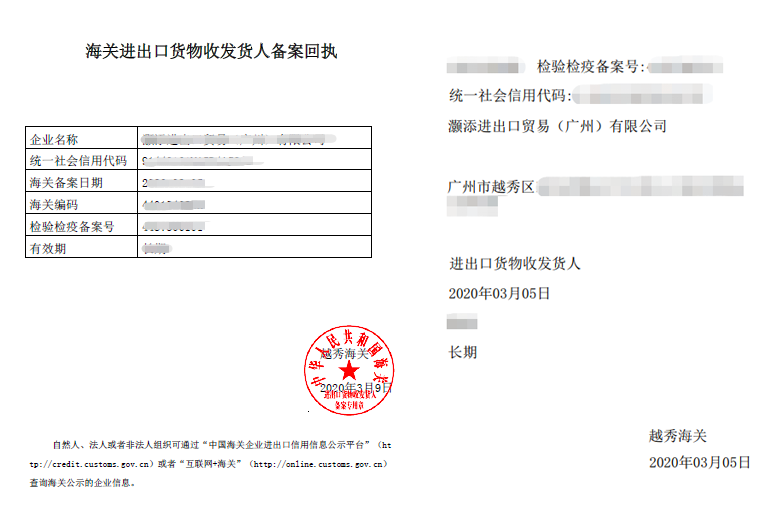 步骤二:申请《海关进出口货物收发货人备案回执》和“检验检疫备案号”