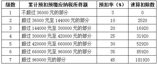 上述公式中,计算居民个人工资、薪金所得预扣预缴税额的预扣率、速算扣除数,按《个人所得税预扣率表一》执行。