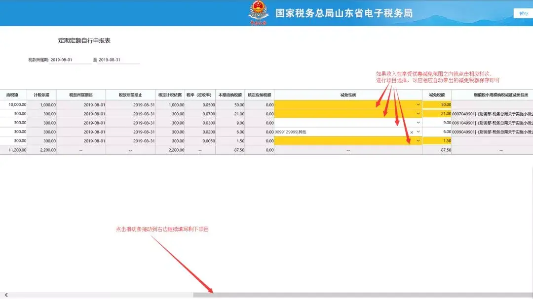应税项填写完毕之后将下拉条向右拉,继续向后填写。