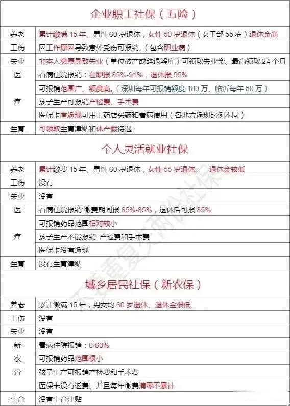 三类社保的区别