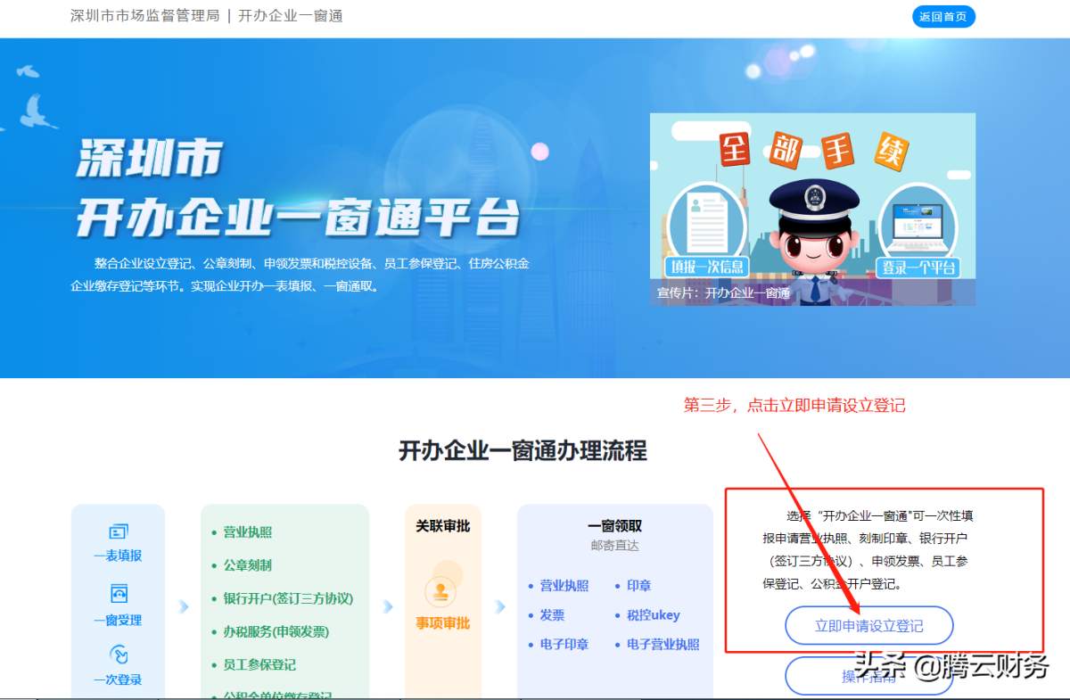 第三步 点击立即申请设立登记