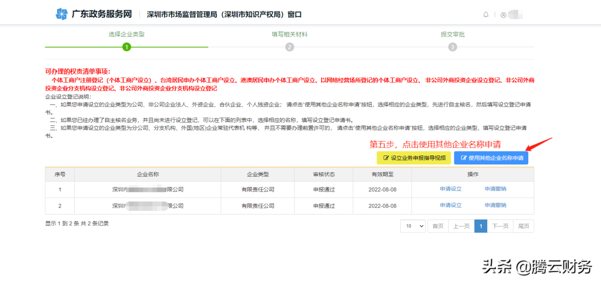 第五步 点击使用其他企业名称申请