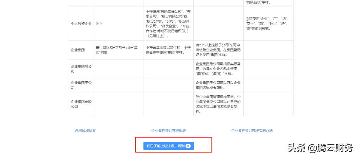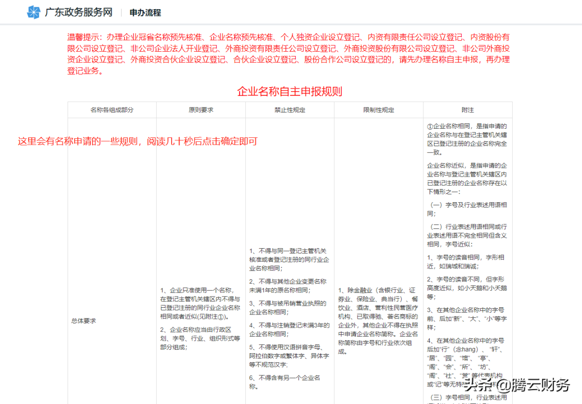 第八步 这里会有申请企业字号的一些规则 浏览几十秒后下一步即可