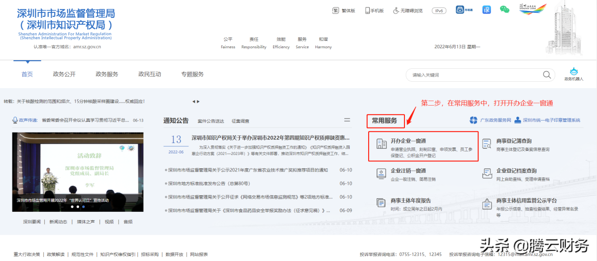 第二步 点击常用服务,开办企业一窗通