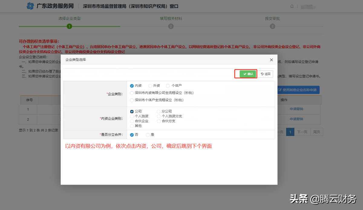 第七步 以内资公司为例,依次内资 公司 然后跳转到下一步