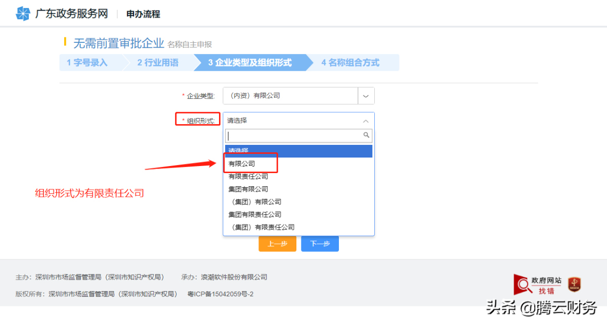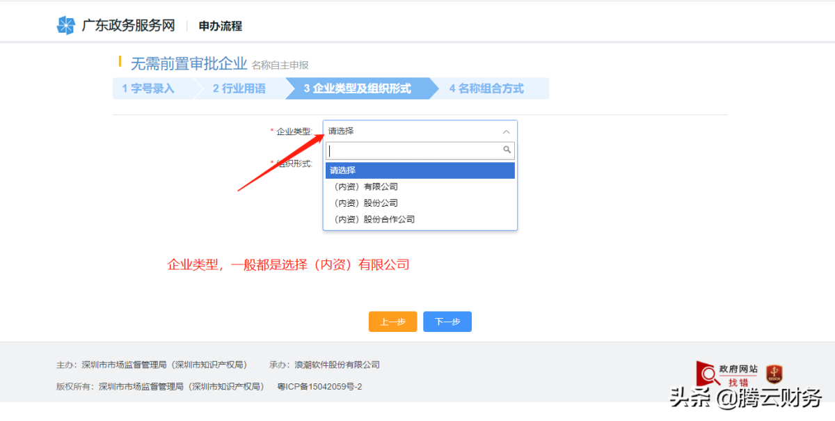 第十二步 选择企业类型及组织形式 企业类型一般都是选择(内资)有限公司