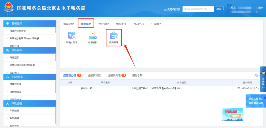 一、我的信息—用户管理。
