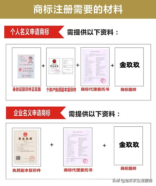 我国商标法规定,个人,企业都可以申请注册商标,需要准备的材料,略有差异,具体资料如下:
