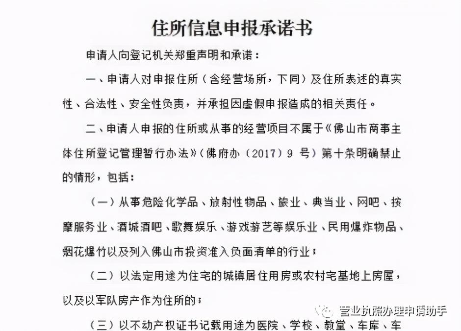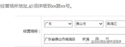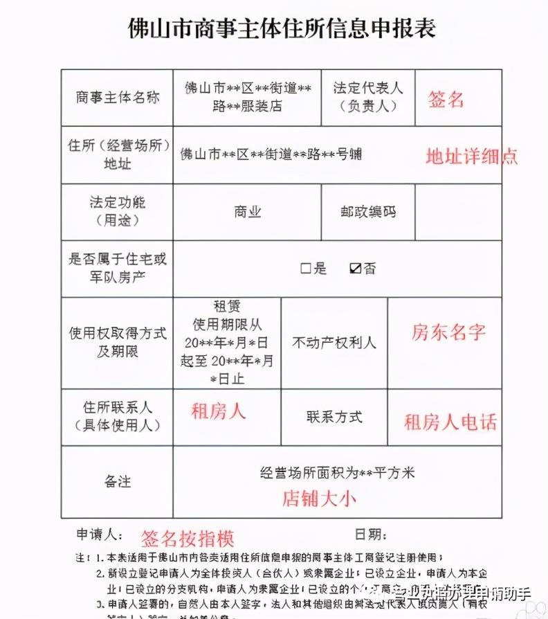 佛山市商事主体住所信息申报表, 注意:住所(经营场所)地址—必须写详细点,不然不通过的。