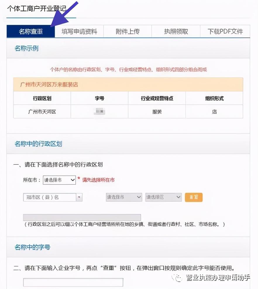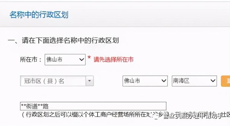注意:(行政区划之后可以缀以个体工商户经营场所所在地的乡镇、街道或者行政村、社区、市场名称。)尽可能写详细一点是因为这样容易通过,现在重名的店太多了,特别是加盟店。详细到xx街xx路,基本是会通过注册的。