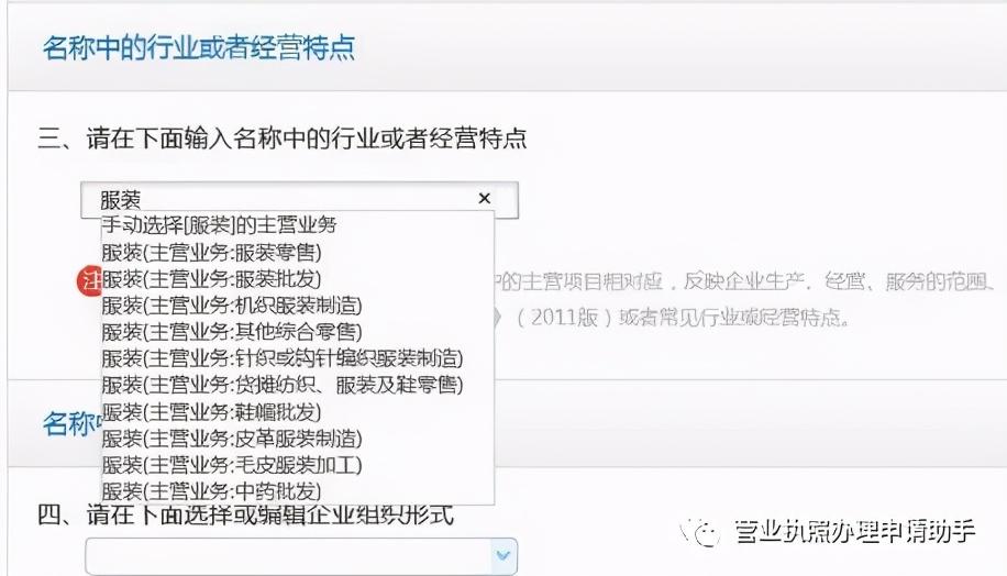 名称中的行业或者经营特点,这里以开服装店举例: 选择你的主营业务。
