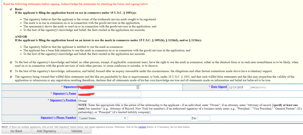 • Signature 和 * Signatory’s Name 都填本人的格式就可以,比如 Lucy 填 /Lucy /