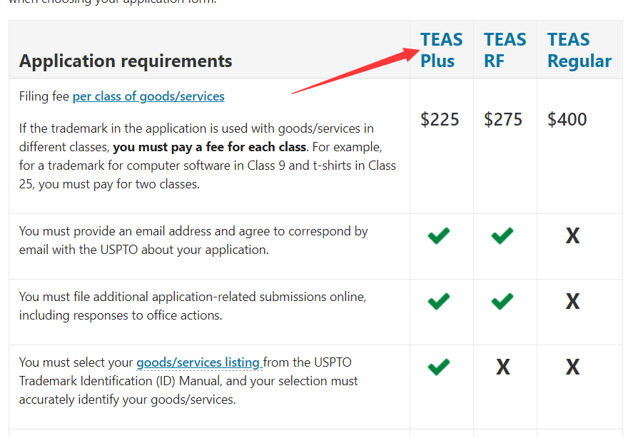 这里有3种价格可选,价格不一样所对应的服务不一样; 以 TEAS PLUS 225美元 为例