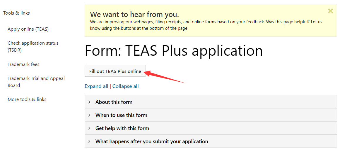 点击 Fill out TEAS Plus online 进入申请页面