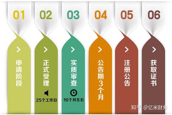商标查询——资料提交——正式受理——审查9个月——公告期3个月——核准注册——下证书