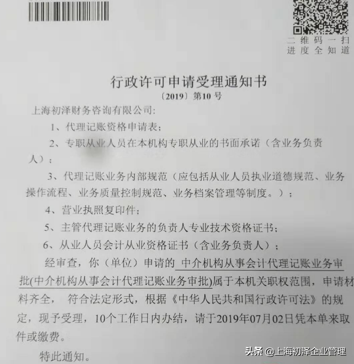 完成以上步骤基本上就可以领取到代理记账许可证了。办理流程不算太复杂,但准备大量材料及人员资料,所以前期准备齐全办理起来较为轻松。