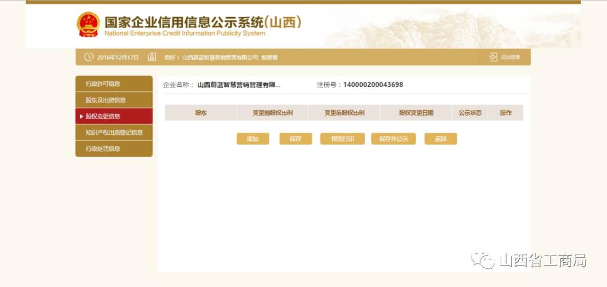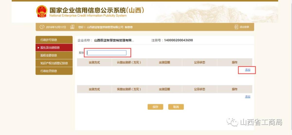 点击【添加】,填写股权变更信息,点击【保存】。