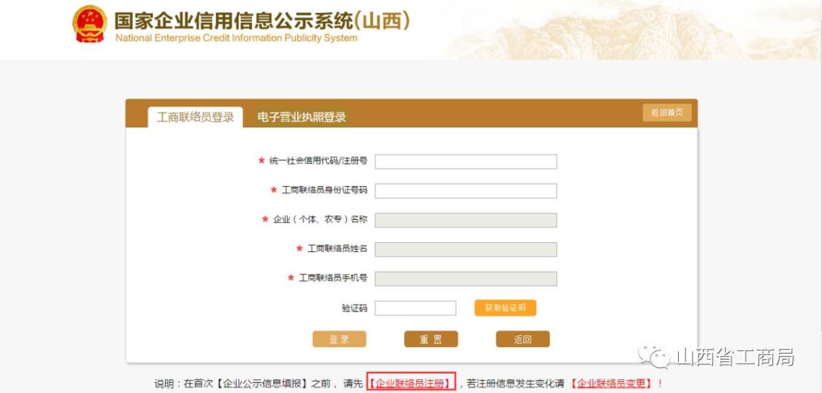 企业信息填报选择登录方式:工商联络员登录。