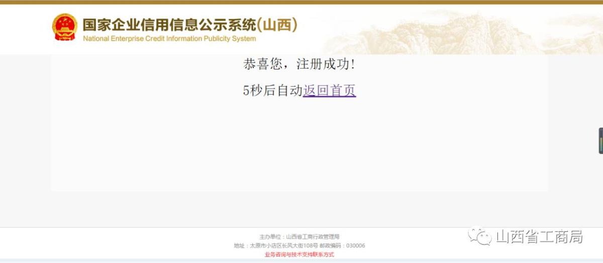 注册成功后,系统提示:恭喜您,注册成功!