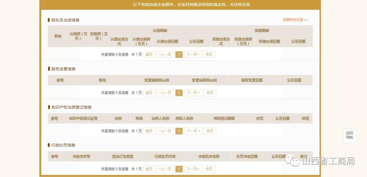 点击保存并公示,可在首页输入注册号(统一社会信用代码)或企业名称,查看其它自行公示信息,如图: