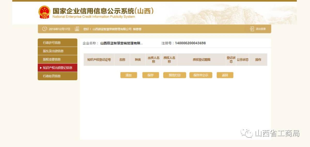 点击【添加】,输入知识产权出质登记信息,点击【保存】。