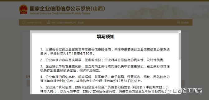 选择好年度年报后,点击【确定】,系统会提示:填写须知,阅读后,点击【已阅】、【确定】进入填报界面。如图: