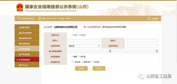 点击【添加】,填写对外担保信息,点击【保存】。