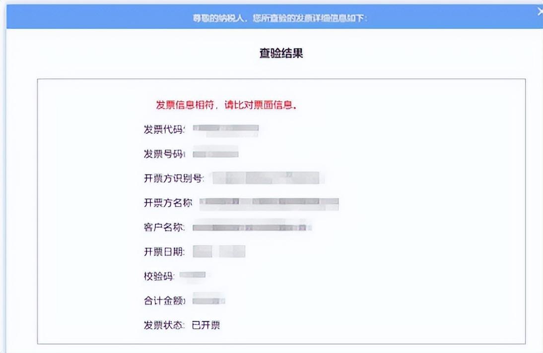 纳税人输入的发票查验信息与税务机关电子信息一致,可显示出相关发票明细。