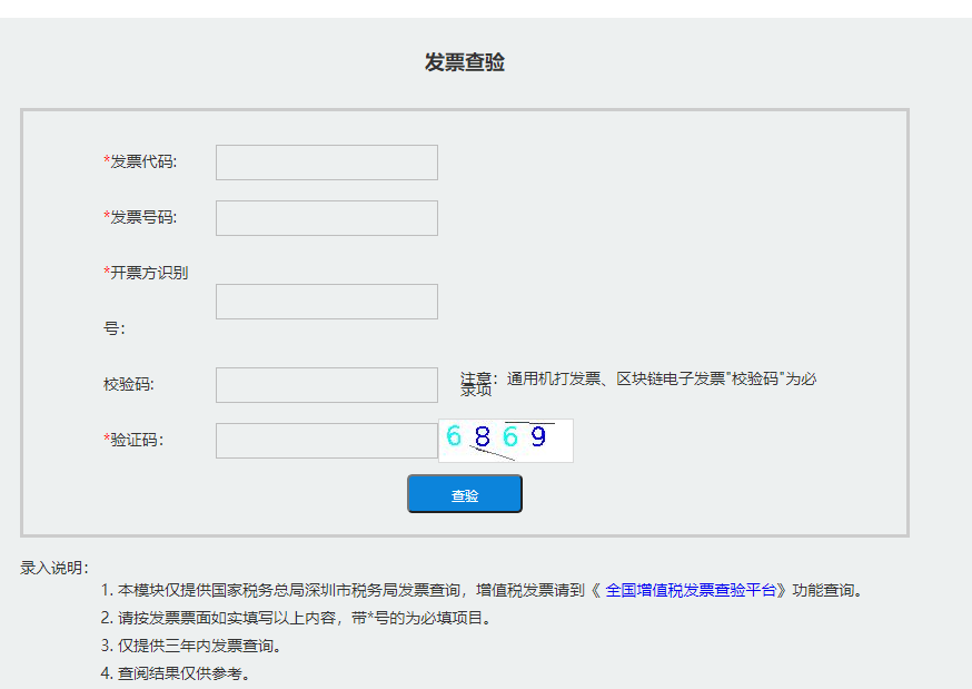 步骤2:按照页面提示,填写好发票信息后,点击“查验”。
