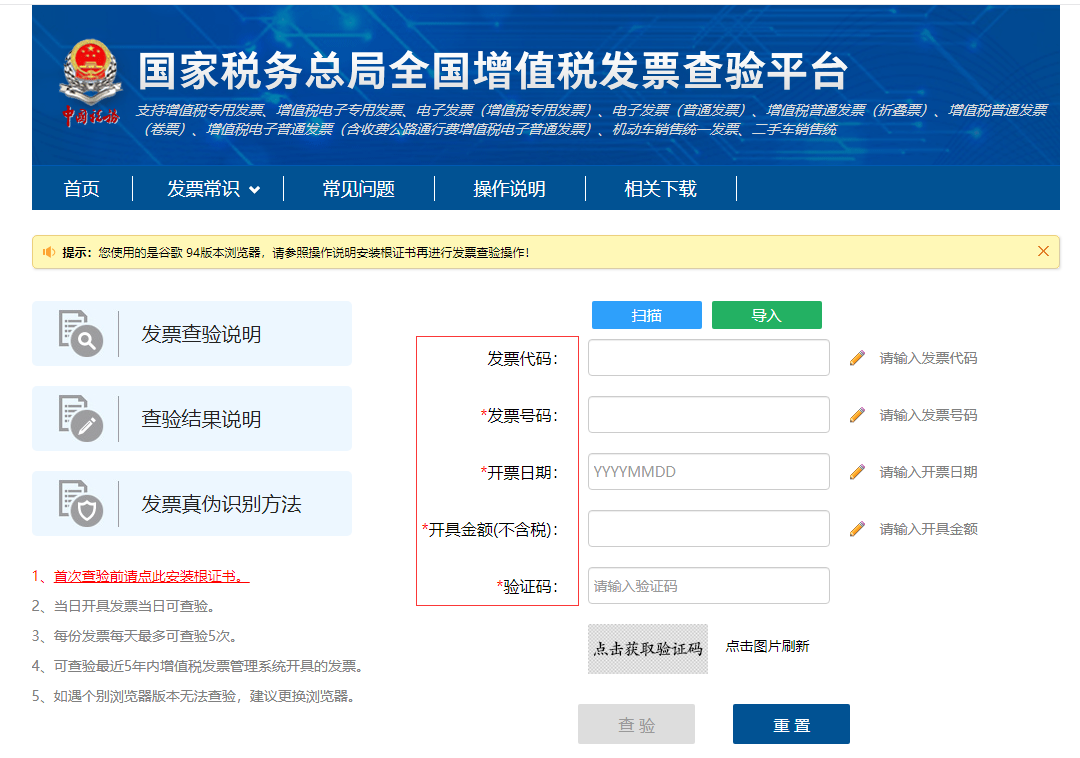 渠道一:国家税务总局全国增值税发票查验平台