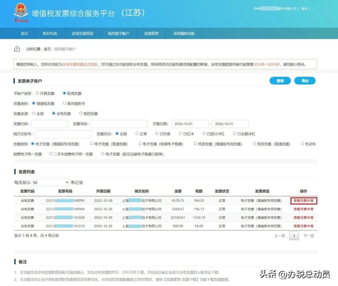 查询到记录后,点击发票操作栏中的查看发票详情就可以进入到发票界面;