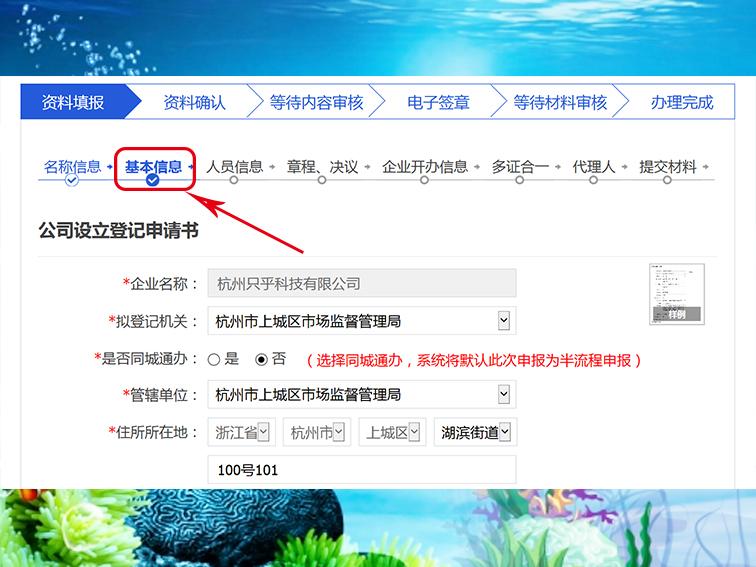 第七步:点击“可申报,列为申报名称”,填写企业基本信息后,名称即可保留2个月;