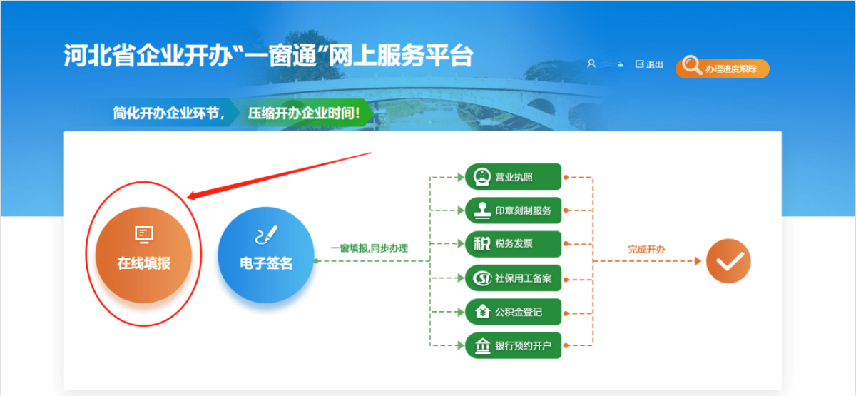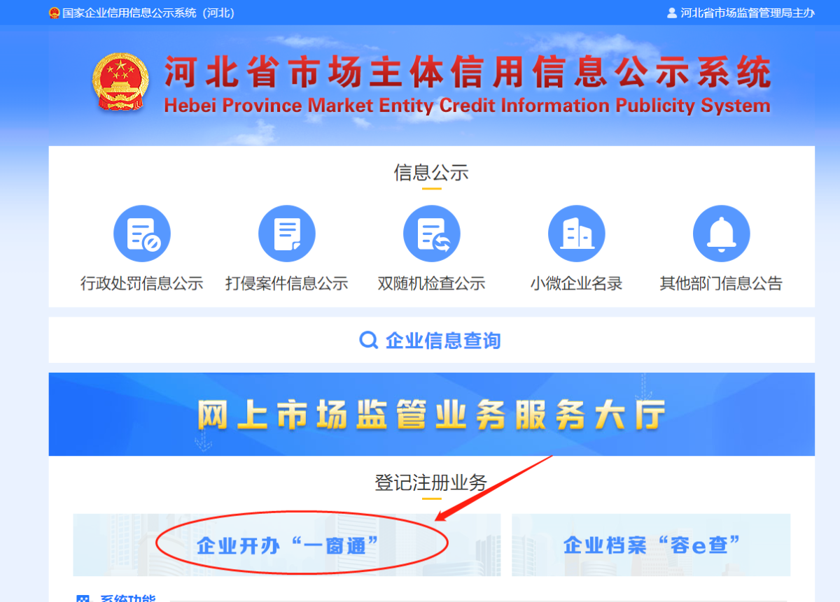 1、首先登录河北省市场主体信用信息公示系统,里面有企业开办一窗通模块