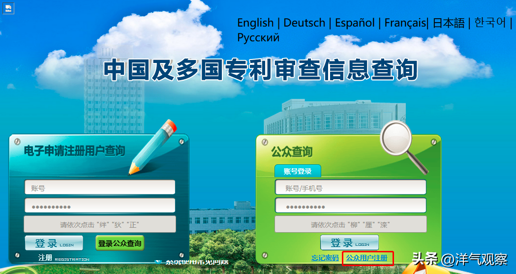 3、进入(公众查询),有注册账号的用户直接输入账号、密码,验证登录。没有注册的用户请选择(公众用户注册)。